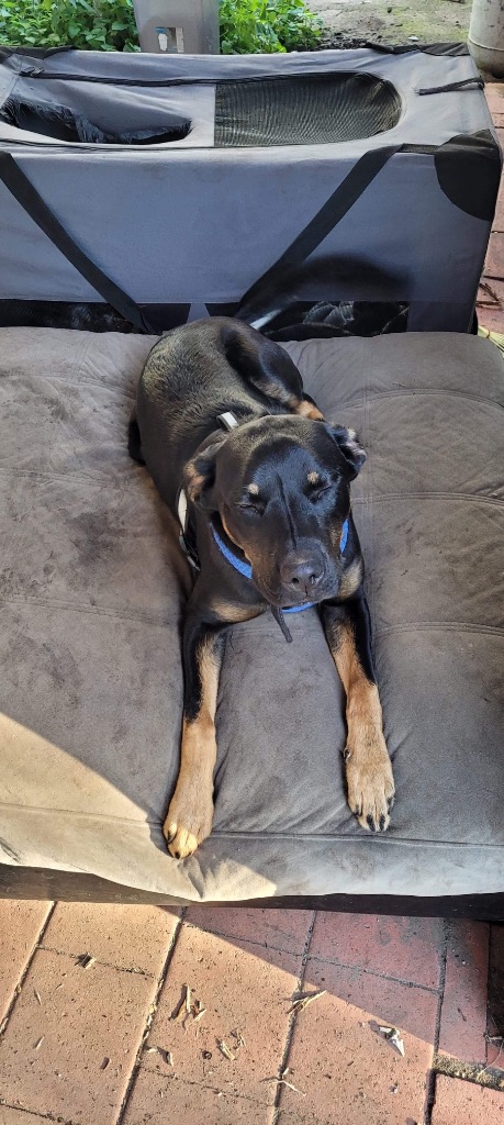 Onyx is a sweet natured boy who ready to find a home of his own he good with kids and other dogs he has a bit of energy to burn so a large size yard and regular exercise is required