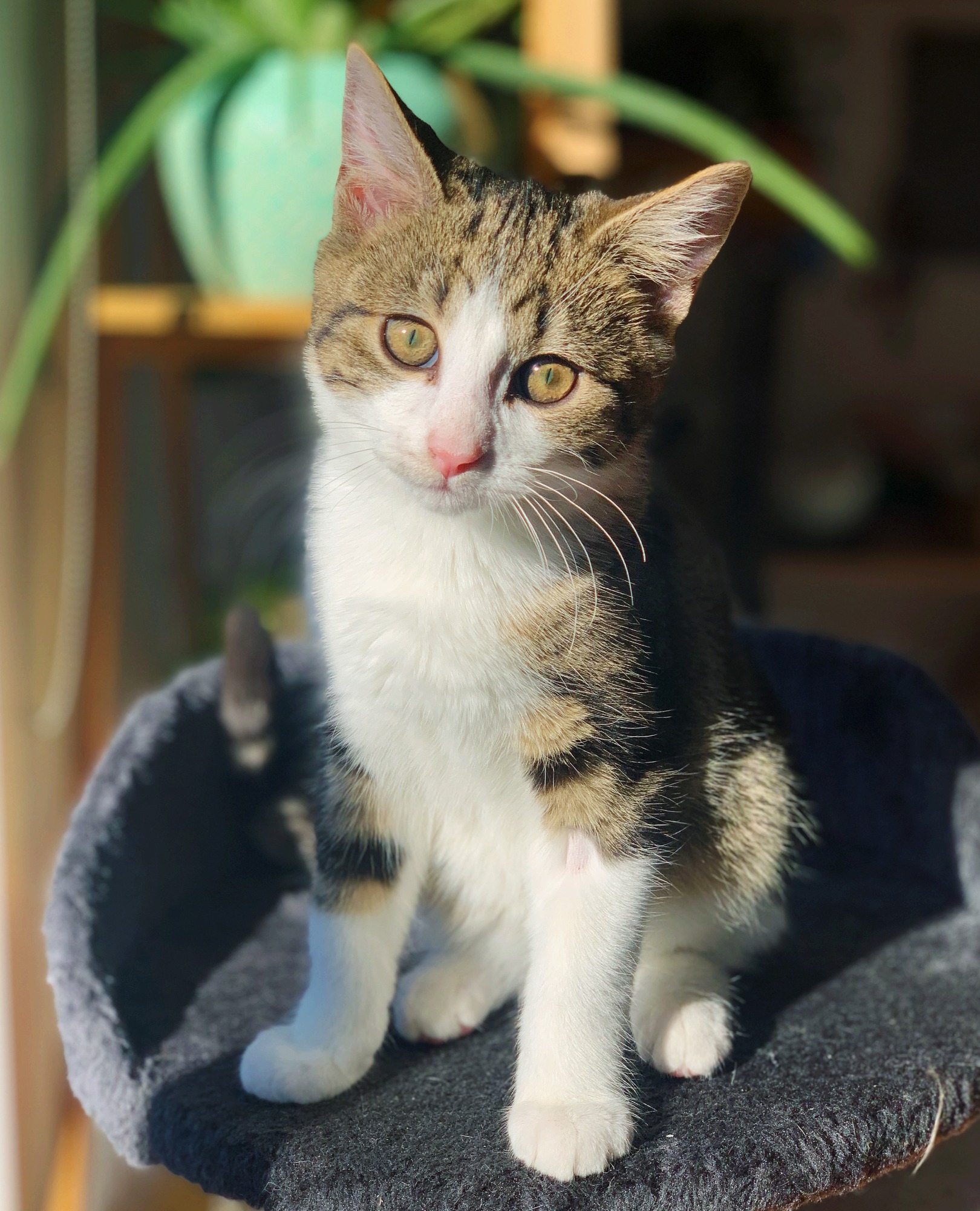 Michael has a very gentle nature and shows a lot of affection. He is the most comfortable kitten out of his litter around his foster Mumma and doesn’t hesitate to come up for pats or chirp right in her face for a cheeky hello. He loves attention and will need to be showered with lots of love in his new forever home. Don’t worry, it’s not a one way street with Michael, he’ll happily reciprocate by making your lap his permanent 2nd bed, with his roaring engine and lots of head nudges. He has a lot of energy and when it’s playtime he’s fully invested in chasing tails, balls, climbing his cat scratcher and playing hide and seek with his siblings.