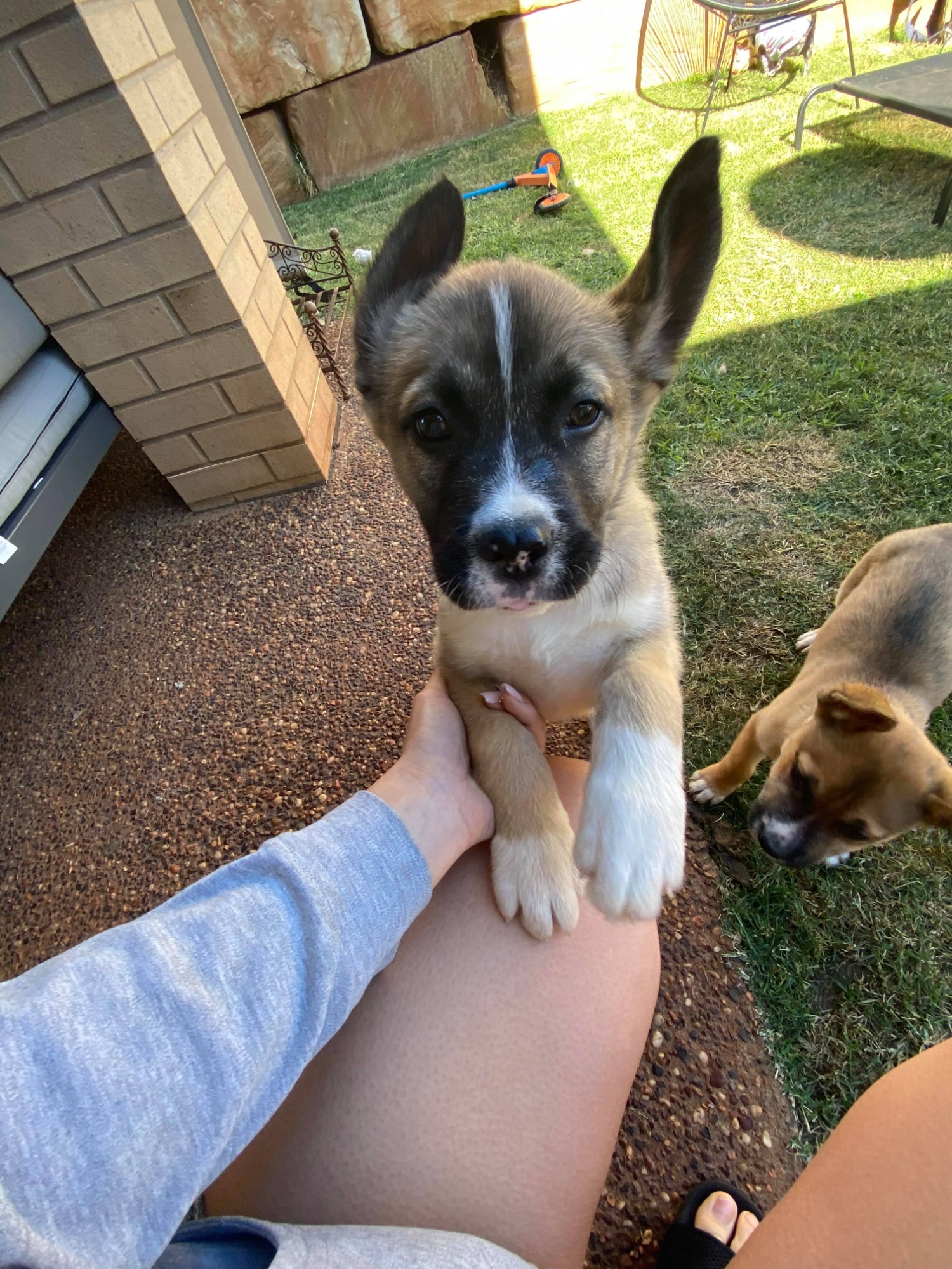 CHEWY ... Kelpie X Shepherd ... he is 8 weeks of age and will be a large breed dog... Please research the breed before applying. He is very cheeky and likes being centre of attention, great with children and other pets..... Please remember will require good fencing and exercise as well ... She is located TOOWOOMBA .... carolangelsrescue@gmail.com for more info