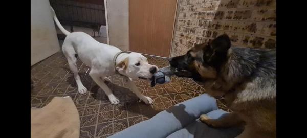 Ace grew up with a family with children and is a very loving dog. He loves people and is a big ball of energy who loves playing with other dogs.