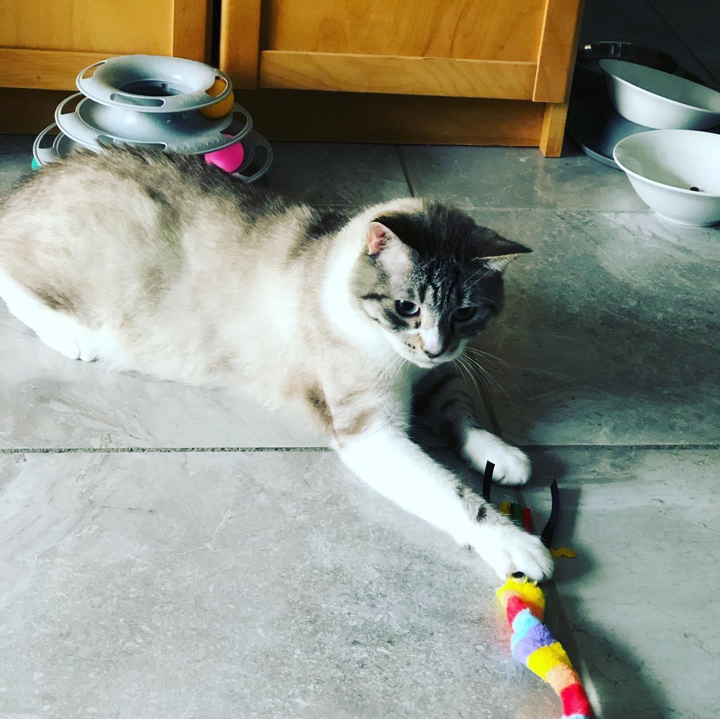 Romeo is a beautiful boy-good looking, sweet personality and friendly. He likes human company and snuggles next to you and enjoys spurts of playtime. He is talkative at times. He has always been an inside only cat and needs a calm home as he can get stressed in noisy active situations. Despite this he adjusts to change and will make a loving family member.