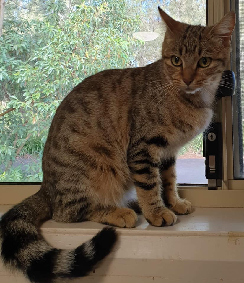 Imp 492 Tabitha. Tabitha is approx. 6 months old tabby female domestic cat. She has beautiful markings and is very affectionate. She comes to the front of the cage every time you walk past, otherwise is happily curled up in her bed. She is litter trained and very clean. Her adoption fee of $305 includes microchipping, registration, vaccination, desexing, worming and flea treatment. She is ready to go to a new home now. Please call 6583 3488 or visit our shelter if interested.
