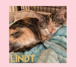 Lindt is a pretty little girl, who is very hopeful of a forever home, Lindt is used to children, other cats and a dog in her current foster home.