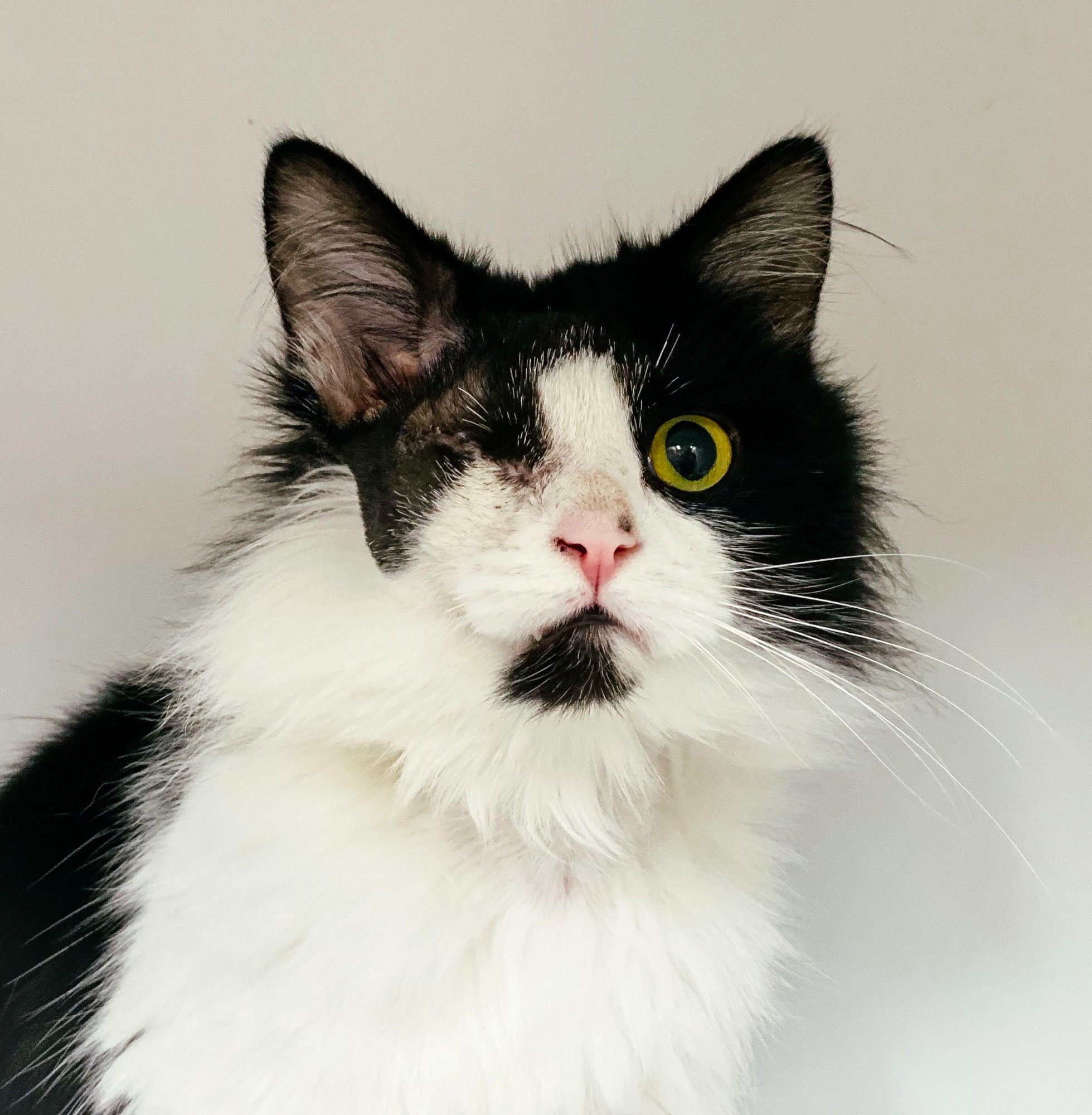 As you may have noticed, I only have one eye! But rest assured this doesn't take away from my handsome looks and sweet personality.