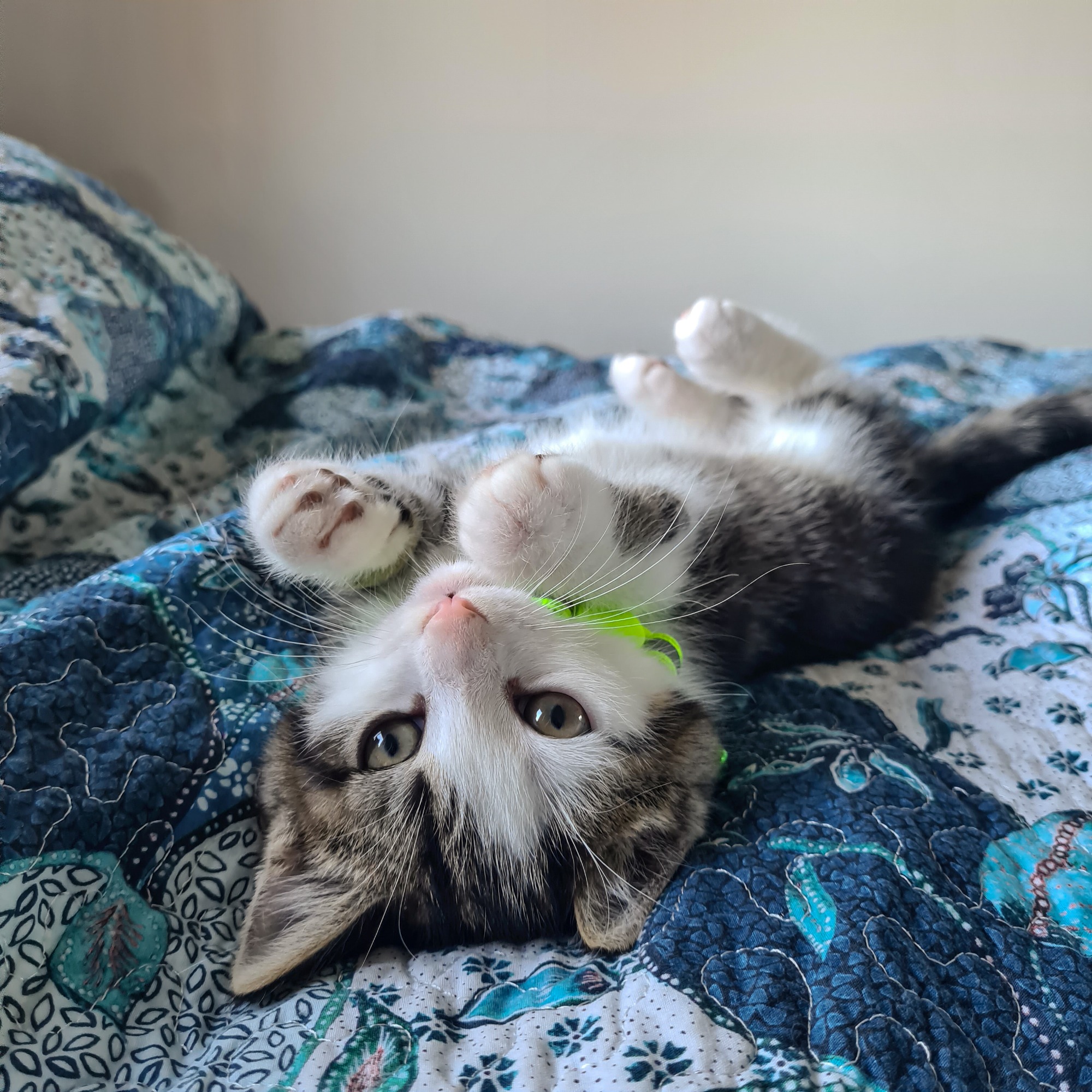 A bit about me! I am the ultimate snuggle bug. I will follow you absolutely everywhere and must be with you and on your chest or shoulder at all times! If I can't be with you then I'll be wrestling with my brother Ted or snoozing in the sunshine 😻