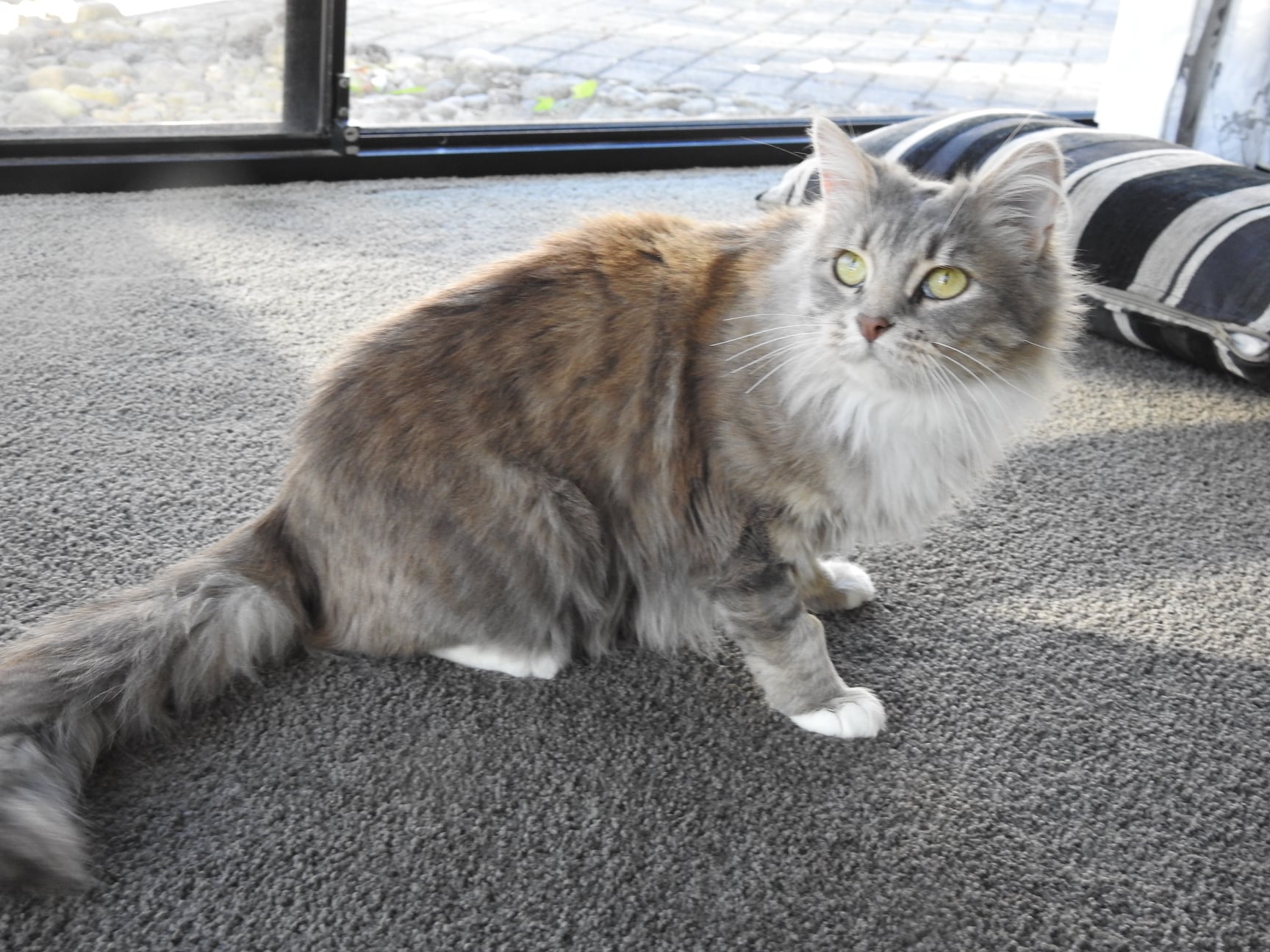 Allie is one of our mum cats and came into our rescue with 6 kittens. Allie is brave and bold, she will not start any conflict but will not run either so a proper introduction to other animals in the home is essential.