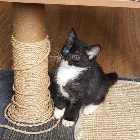 Our darling Lissie is totally blind! But she doesn't let that stop her. She manages to find her way around, and make needed adjustments to her activities herself.. but she must be a strictly indoors kitten/cat.. please do not continue reading if you don't intend for her to be strictly indoors, for her safety. Lissie will also benefit from not having tall cat towers from which she cannot safely get down, and not moving the furniture too often would help ensure her confidence in moving around the home.