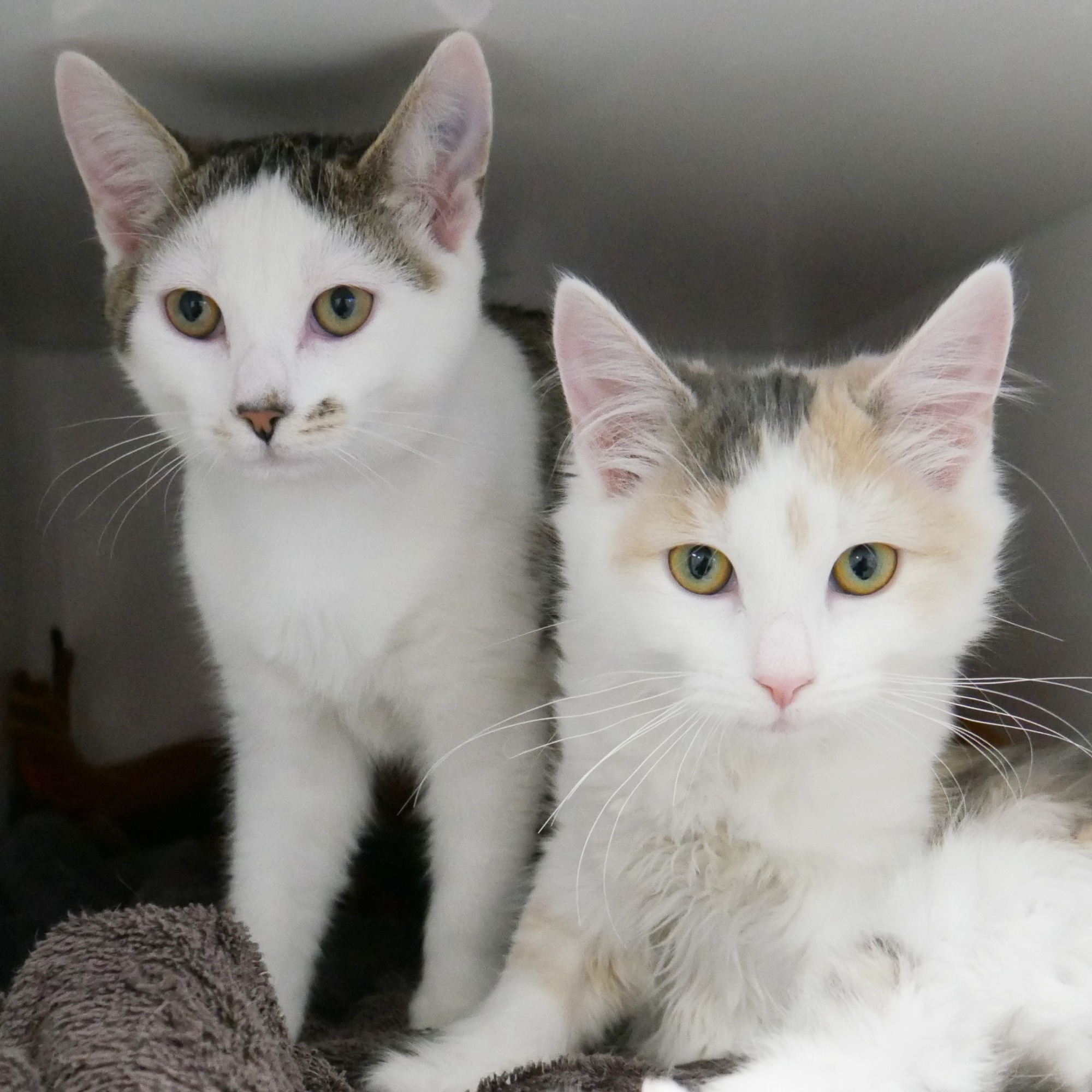 Delilah (female) is the confidant one of the pair, she is friendly and inquisitive. Ronnie (male) is happy to go by Delilah’s lead and will be a step behind her. He is a bit more hesitant and will need a bit of time to feel comfortable with his new home and humans.