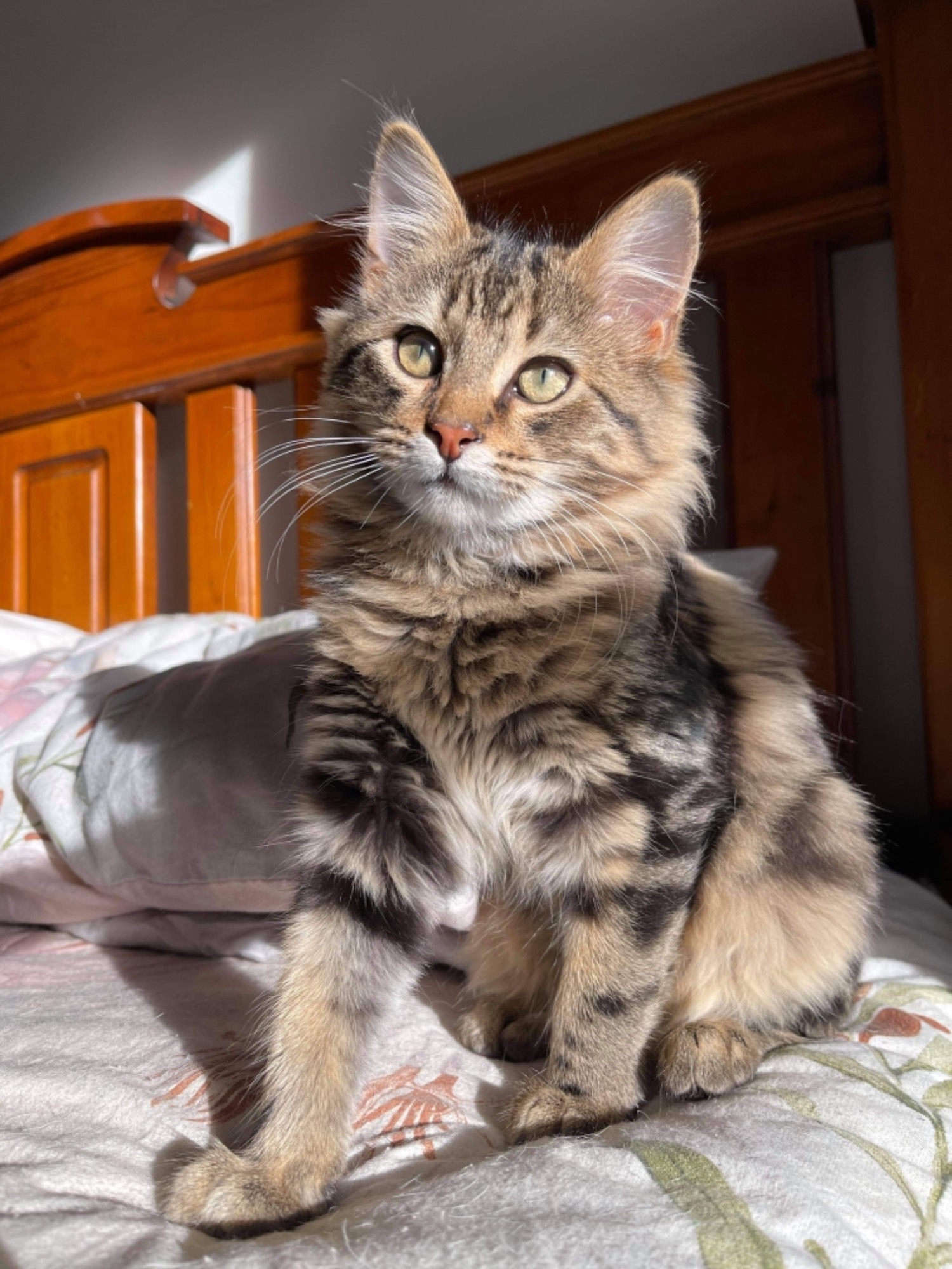 Fergus is such a sweetheart and has the most beautiful soft coat. He gets along well with his brother and would love a home with another kitty to play with. He is very playful and loves his toys. He chases balls around the room, kicking them like he is playing soccer. He also loves playing cat games on the iPad. He would do well in a family with children who are gentle and respectful but love to play with him. After all the playing Fergus loves to snuggle up next to you on the lounge or bed. He also enjoys lying in the sunshine in front of the glass sliding door. He LOVES food and can be a little piggy. He is also litter trained. To keep Fergus safe he would need to be an indoor only kitty.