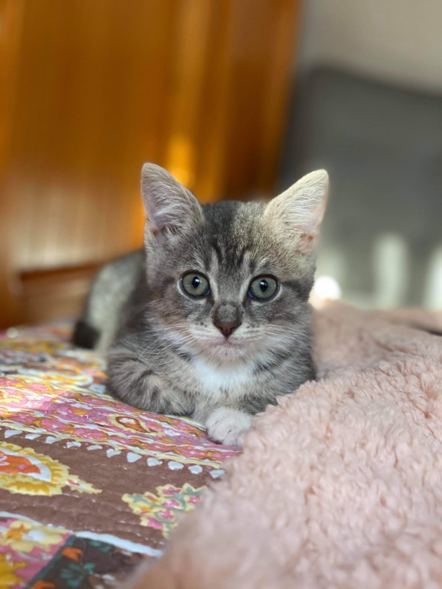 Ash is a 9 week old Male Grey Tabby Domestic Short Hair Kitten.