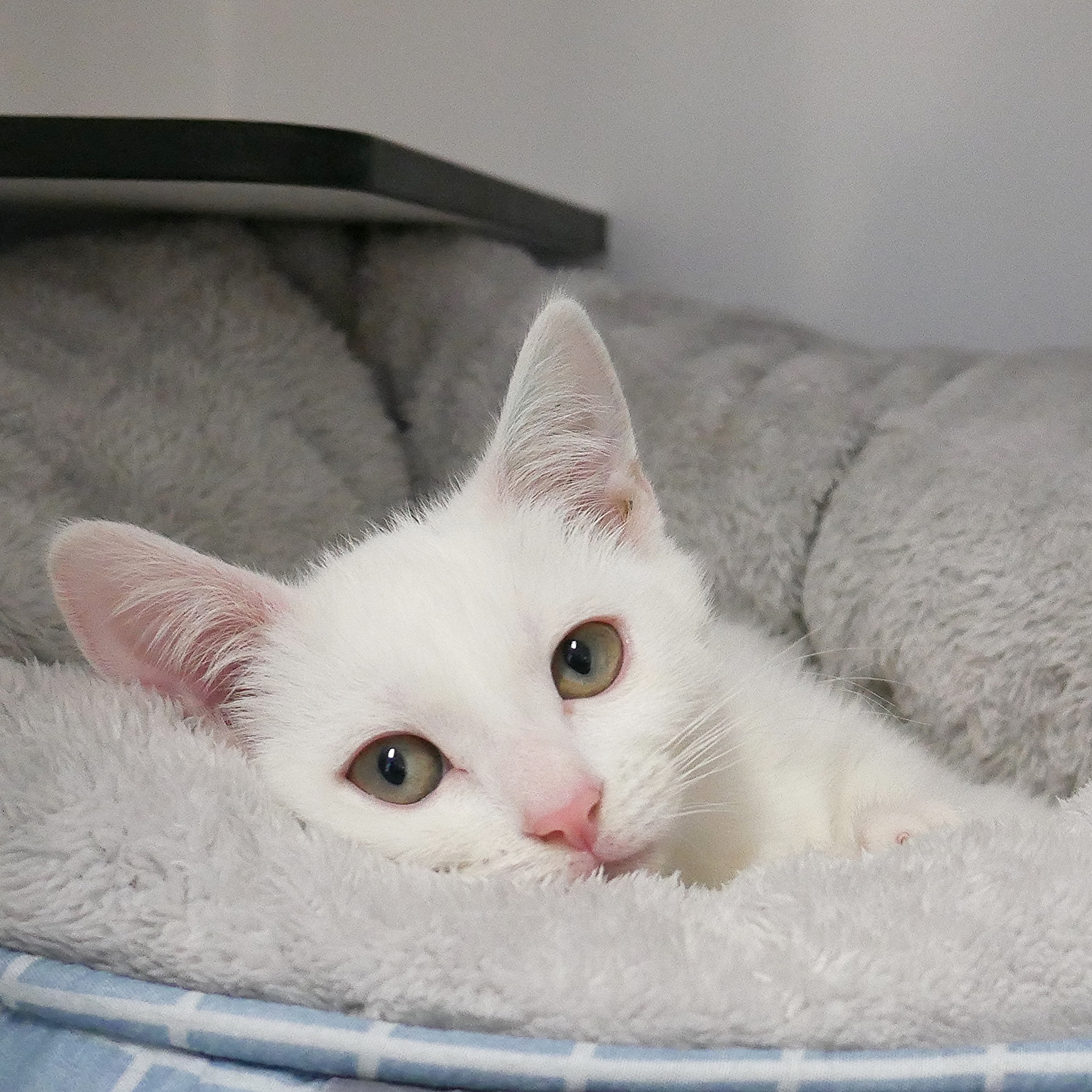 Coco will need an indoor only home to protect her ears and nose from skin cancers. She would be best in a home without young children.