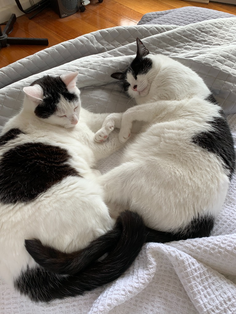 They are both super well behaved. If you let them they would love to sleep in the bed with you, but are also happy in a cat bed.