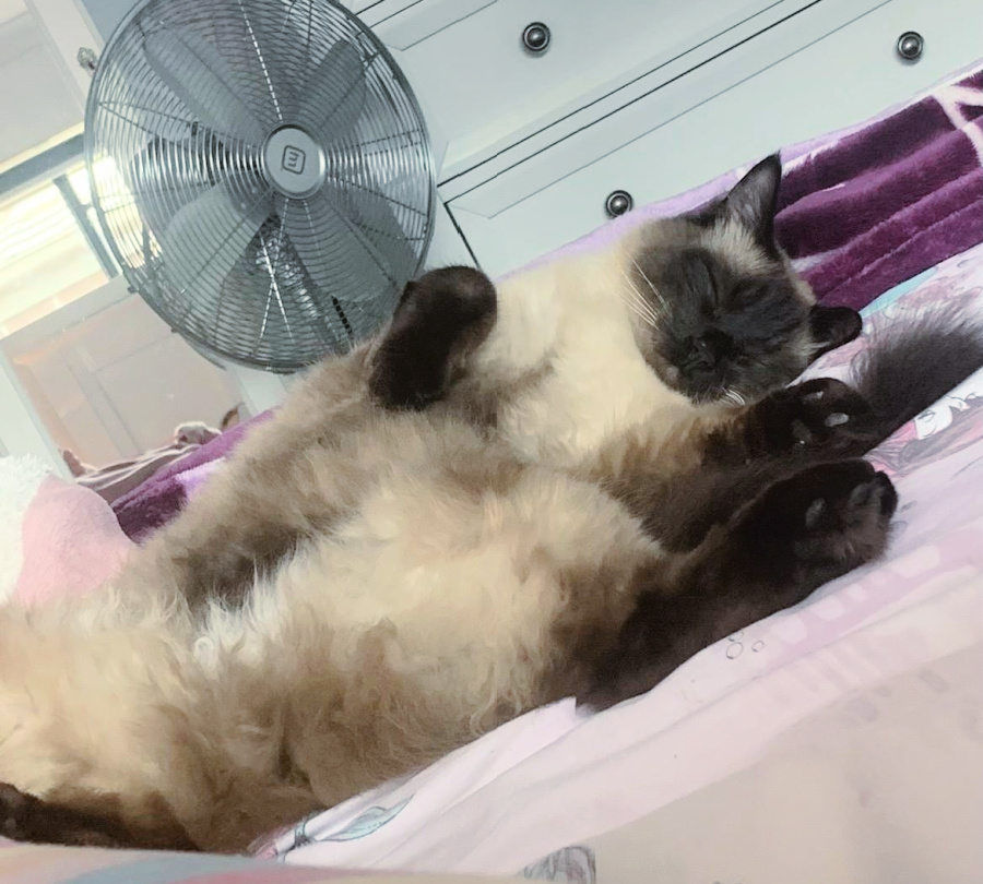 Binx is a big, floppy, dopey boy who love to drape himself across you like a giant fluffy hot water bottle. He loves snoozing in the sun be it in the window, or in a secure outdoor space, but he is not suited to being let outside to wander; he has NO road sense and likes to maroon himself in tall trees! 😳🤦♀️