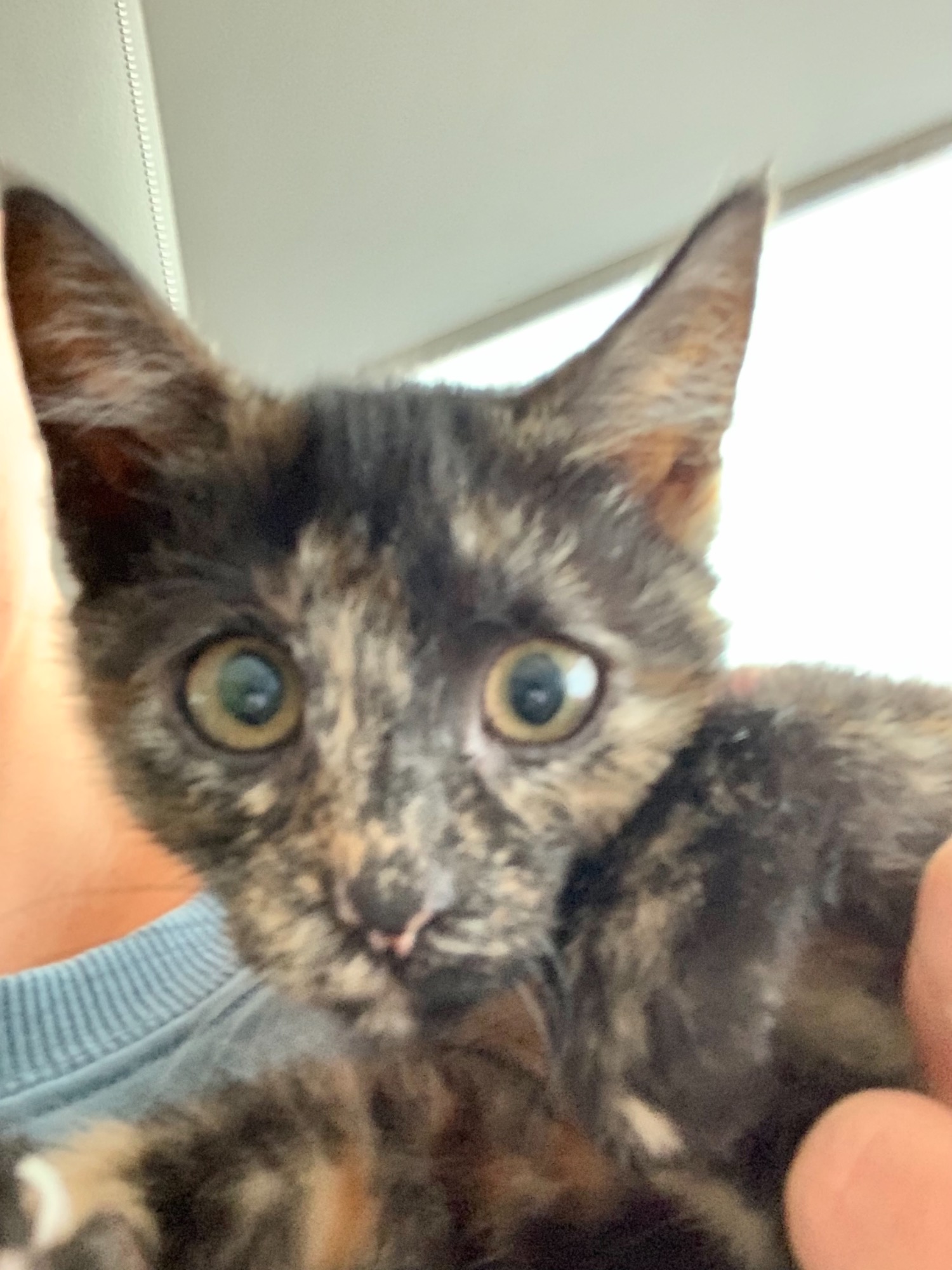 Paris is a sweet little torti girl - the tiniest kitten in her litter. She is playful, fun and sweet.
