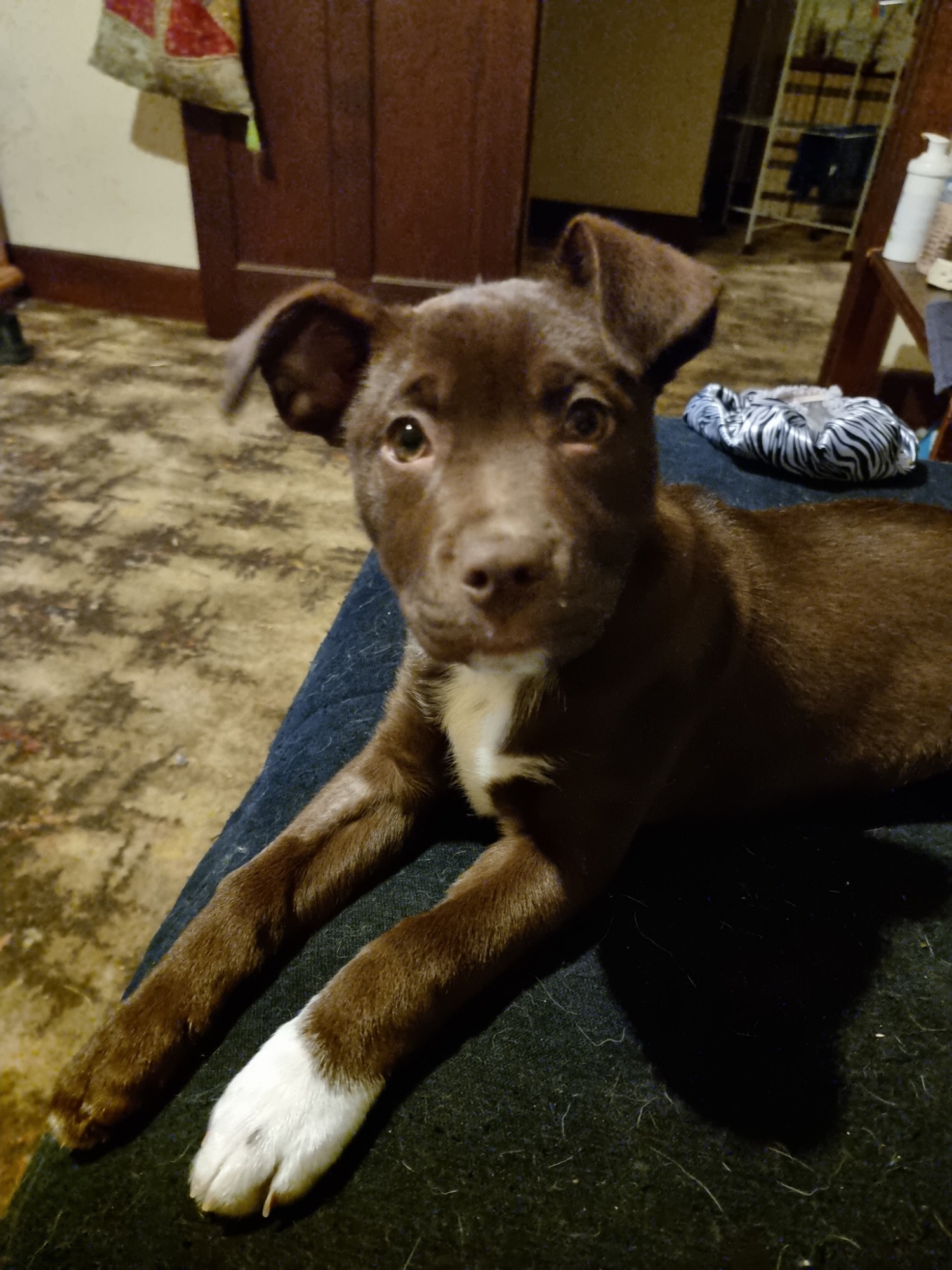 Hunter, this little buy is a ball of energy with a lovely soft, snuggly side. He loves being close to his humans, having a cuddle, or curling up beside them for a nap. He sits and waits for his food, is crate trained, and is doing well toilet training with reminders from his humans.