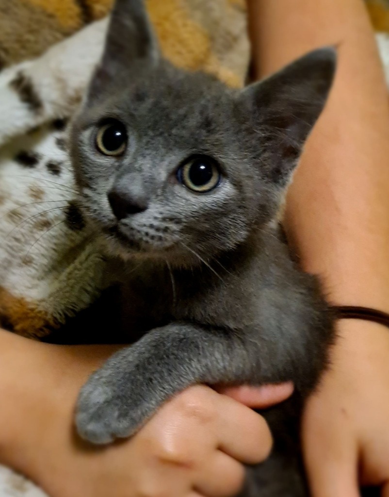 Hi, I'm Little Ted. I was found at a work site when I was just ten days old and very tiny. I've been hand raised by my foster family, and am used to being the baby of the house. I love being around people and am super affectionate - the more hugs and kisses the better! In between cuddles I love to run and play like all kittens do.