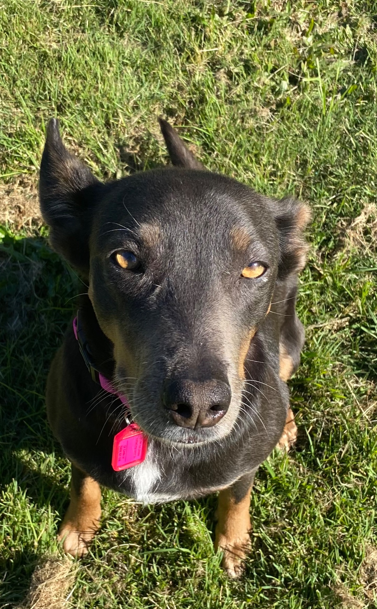 Nelly has the prettiest face and most amazing colours. She his very sweet and does not look her age. She is sleek and fit and would do well for a hobby sheep herder. Nelly doesn’t like ducks but is fine with chickens…. Go figure 🤷♀️