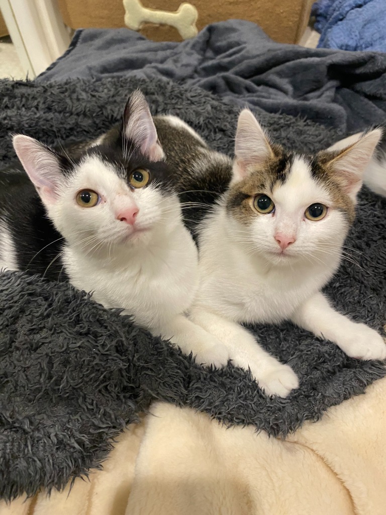 Mr Tippy and Bella were brought into care as scaredy kittens, and have now warmed up beautifully to indoor life with humans and all the creature comforts.