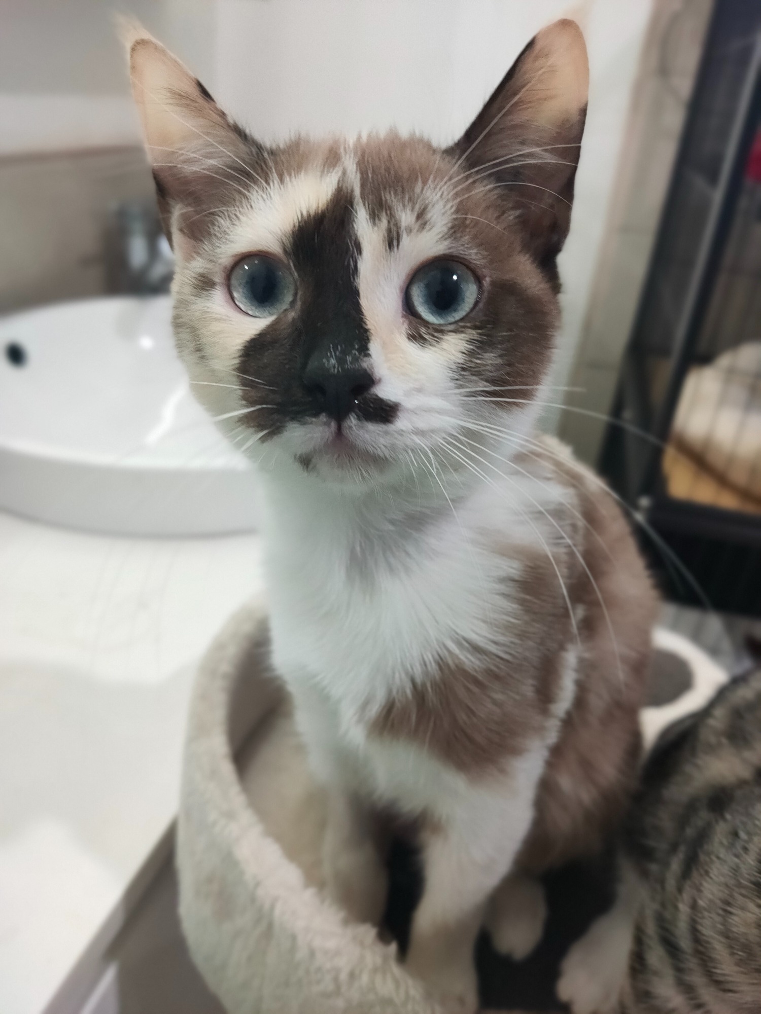 Meet cookie she's a beautiful cat who's been around dogs but doesn't love them in her face but she's ok. She loves to have a pat and be in on what you're doing. She's good with other cats and snuggles with one of our other kittens:)