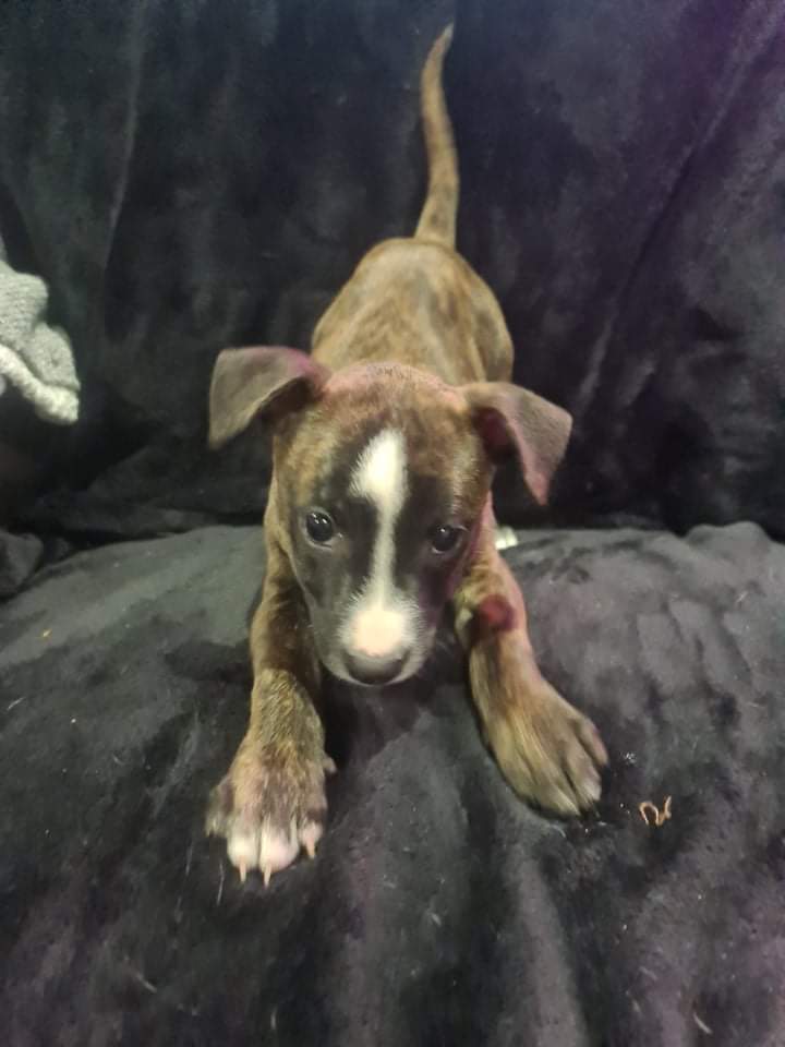 This little staffy x mum was an English staffy dad we have no idea.