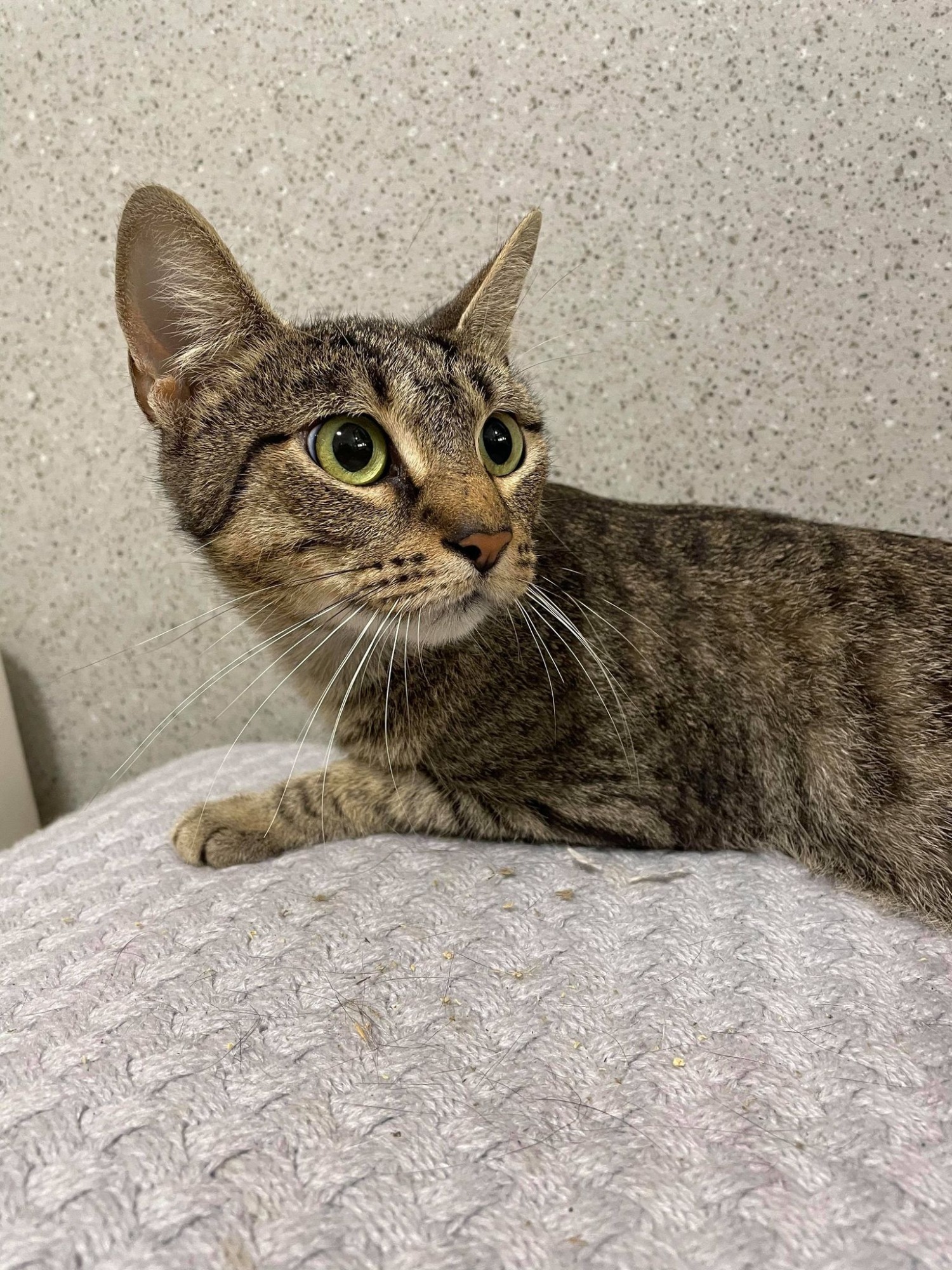 Imp 525 Molly. Molly was the mum of our Harry Potter Kittens. She is approx. 2 years old, female brown tabby cat. She is a very sweet, easygoing cat. She is litter trained, social. She is just looking for somewhere to call her own. Our cattery was full so she went to foster care for a few days and they said: “This little girl is super affectionate and will snuggle on your lap and give you head bumps to say “I like you a lot”. She loves food…her food, your food, it doesn’t really matter. She’s an inquisitive and talkative girl and will let out a little “hello” when she wants your attention." Her adoption fee of $200 includes microchipping, desexing, vaccination, worming, flea treatment and registration.
