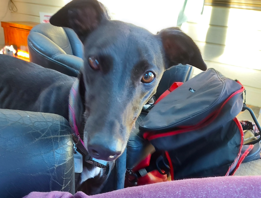 I have learned that it is best to wait at the end of the kitchen when it is food time (but if you are not around, I will sneak in and see if there is something to steal on the counter). I am very happy to sleep in my own bed, and I have even learned how to use my foster mum's doggy door. I am not yet too sure about stairs, but foster mum is teaching me.