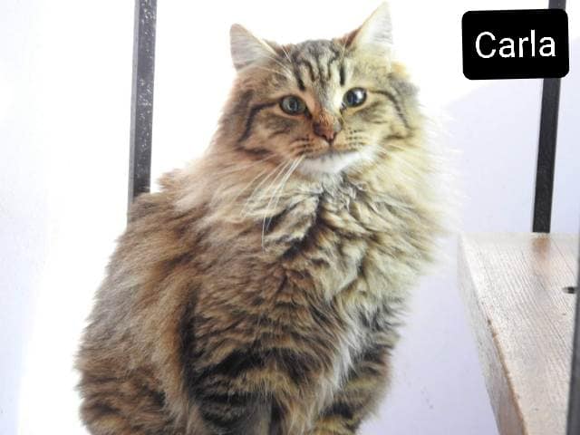 With the elegance and poise of a model, she would be at home on the catwalk at New York Fashion Week. Carla’s beautiful markings, expressive face and lovely soft tail make her extremely photogenic. This stunning beauty enjoys a pat but, when held in your arms, relaxes and purrs endlessly. Always well groomed, Carla has green eyes, long whiskers and silky fur.