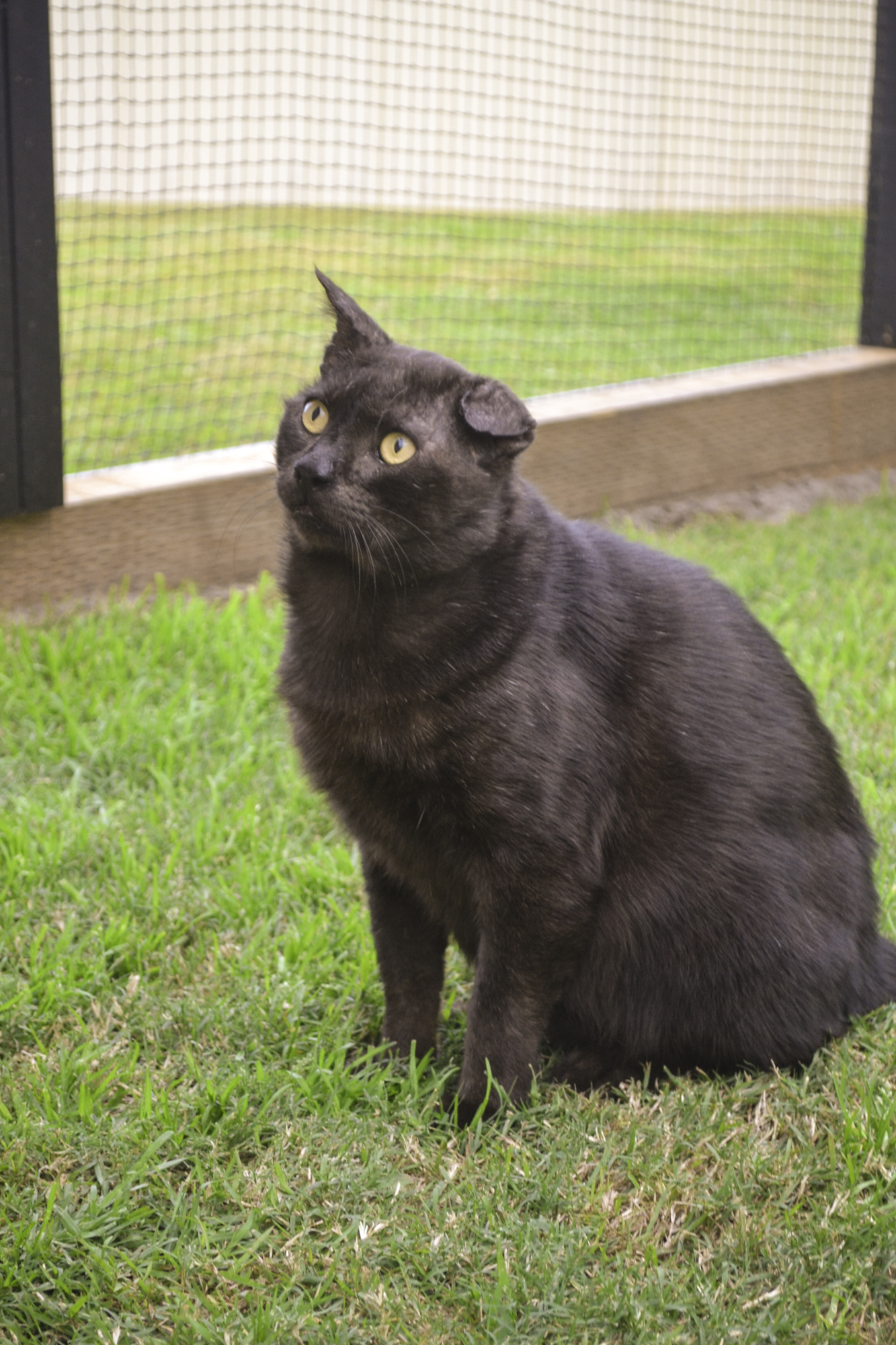 Because of his FIV positive status, Percy needs to be an inside only cat or have access to a secure outside enclosure. He uses the cat enclosure we have but is not overly keen on being outside as he is wary of loud noises and the sound of cars. He prefers being inside after his years on the street and adapted very quickly to a secure and safe indoor life.