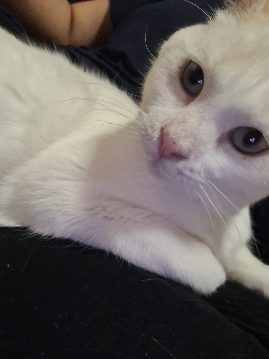 She is so beautiful she just wants to cuddle up on your lap and get Pets she's vocal when petting her and loves to sleep with her head on your arm, she's very playful she gets her zoomies a couple of times a day, she's good with other cats but prefers human interaction she will follow her human around the house, she's not scared of people. She LOVES food.