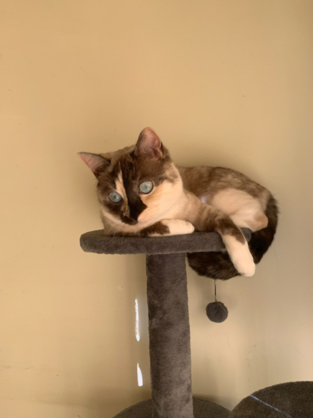 She is happy being left alone as long as she has a safe place to curl up, loves sleeping in her nook/cat bed up high and where she can grab the sun.