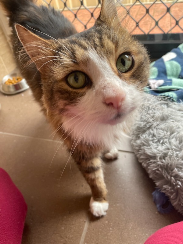 FAVOURITE THINGS: He occasionally plays with toys. He has a little mouse that he swats around and enjoys playing with a long string toy but gets over it quickly and will go and find a comfy place to relax! He will sit next to you on the couch and loves to have a sleep on the bed. He also loves to rub his face on his human and likes to sleep in darker spaces like cupboards when he can.