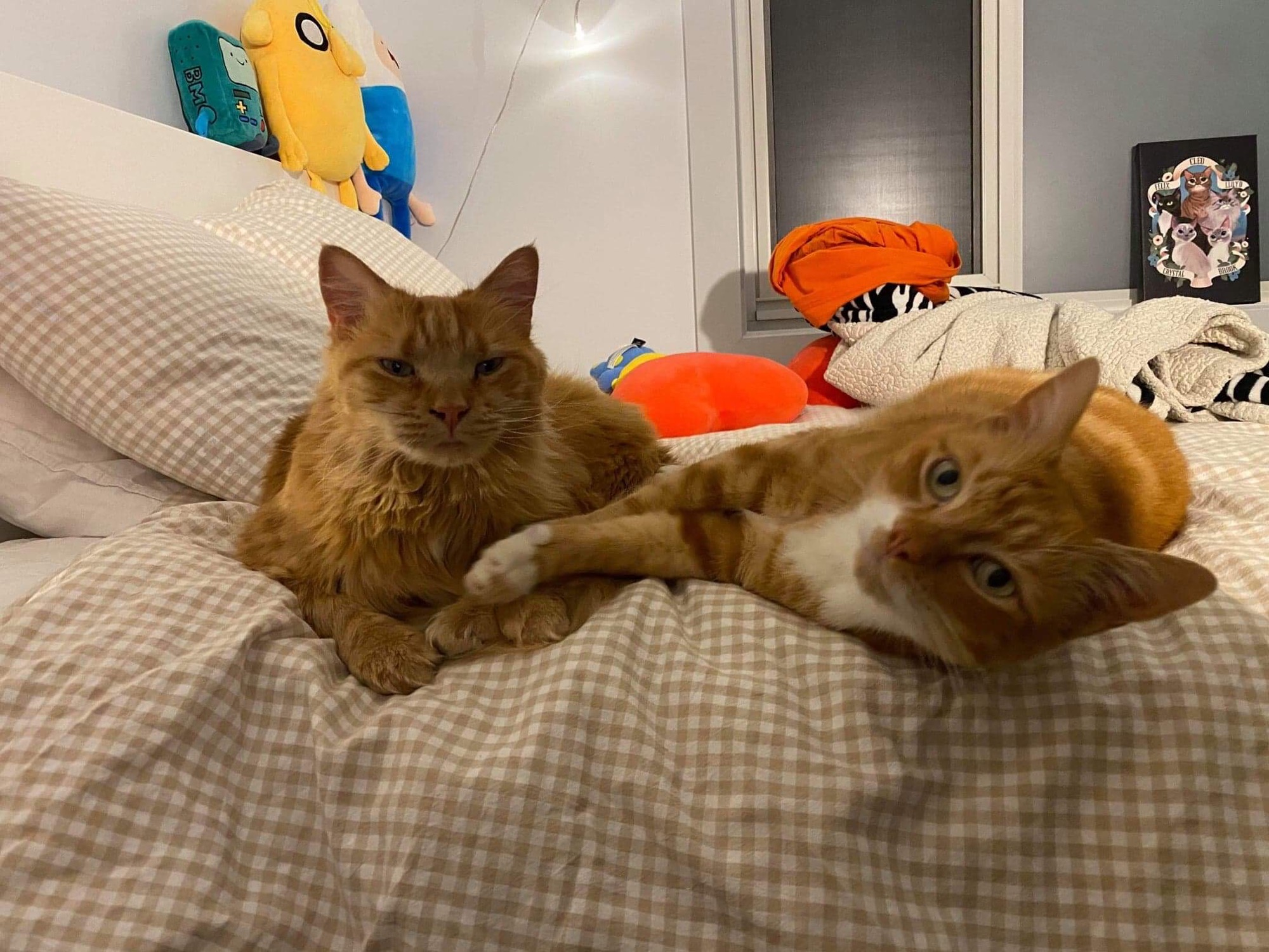 While both cats can be independent at times, they will also snuggle up on your bed if that’s your thing!They both love their food (wet and dry) and feeding time is a great way to bond with them!