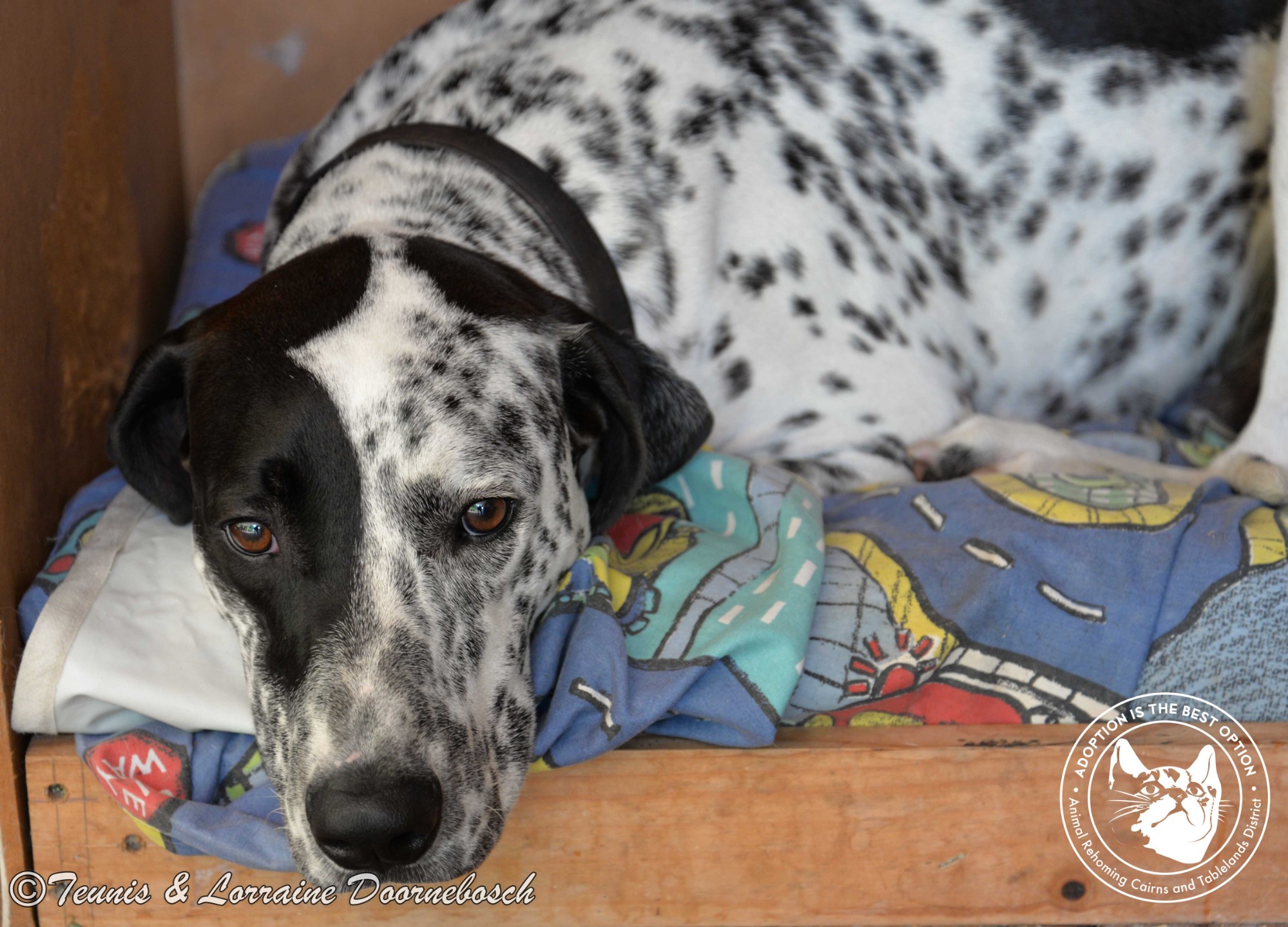 Breed: We understand from his previous owner that he is a Dalmation Cross, but the mix is unknown and so we can't be certain.