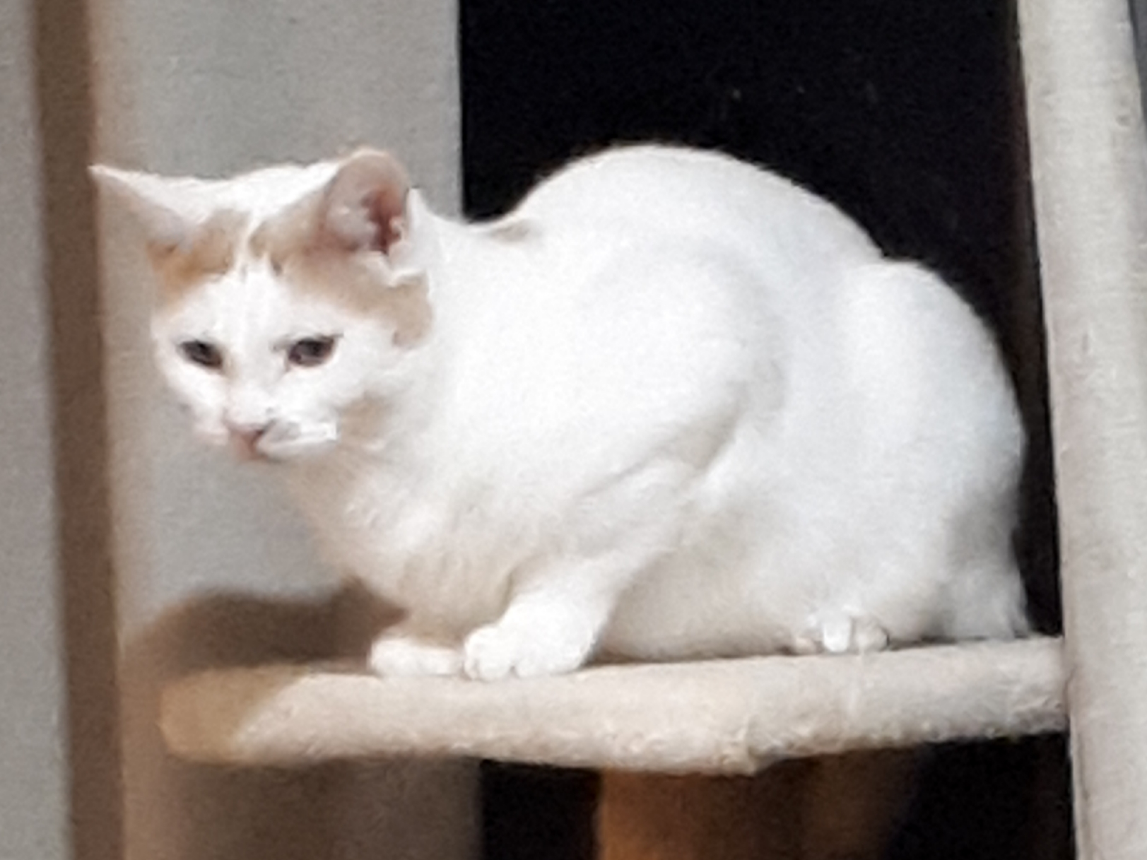 Demi is a true rescue cat- she is very shy as she has come from a hoarding situation. She is slowly coming out of her shell but would do better in a private home with her own human to encourage her. She is good with other dogs and cats and uses the litter tray very well.