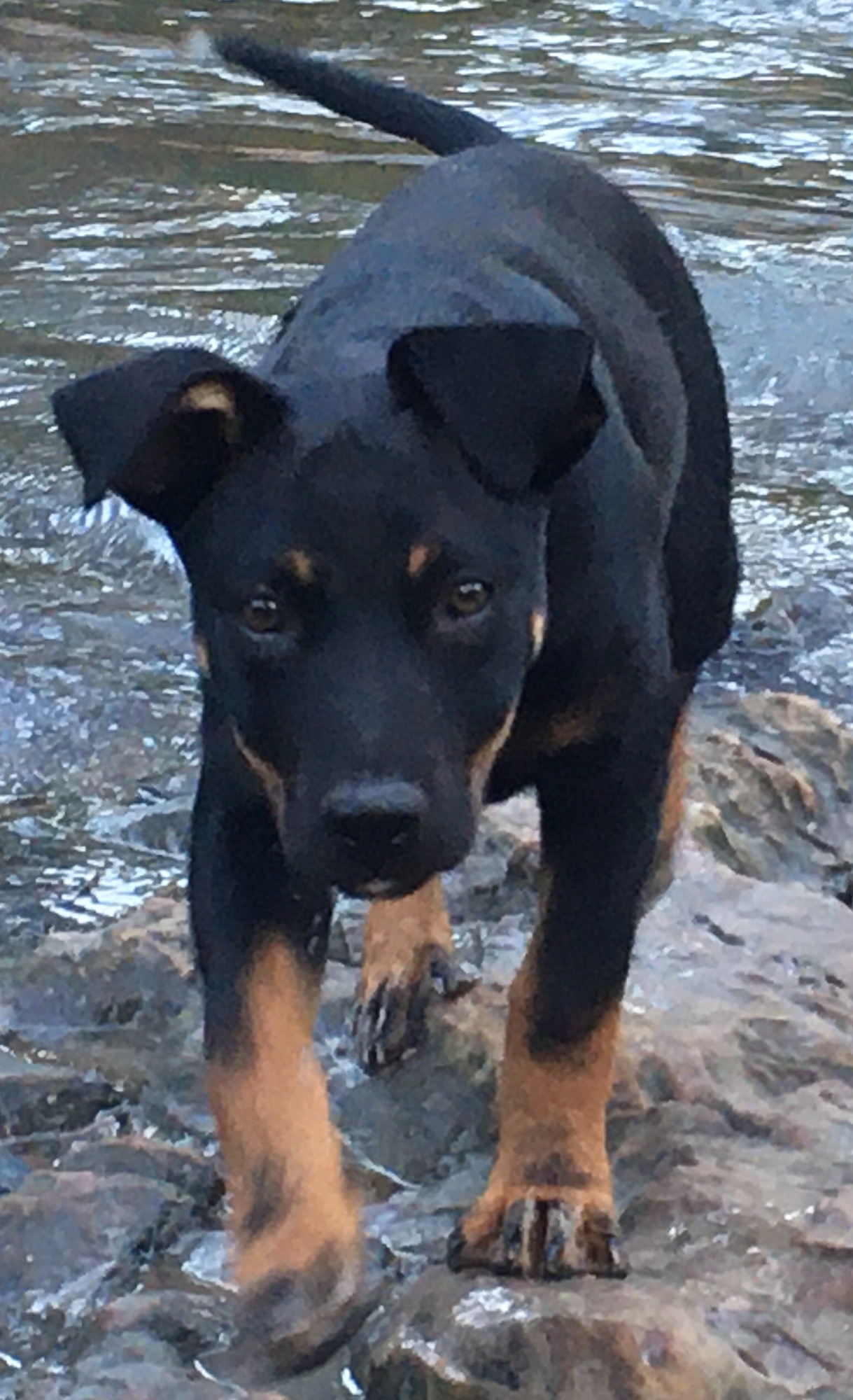 He has learned to sit very quickly and to walk on the lead, loves balls and toys, and loves a cuddle.