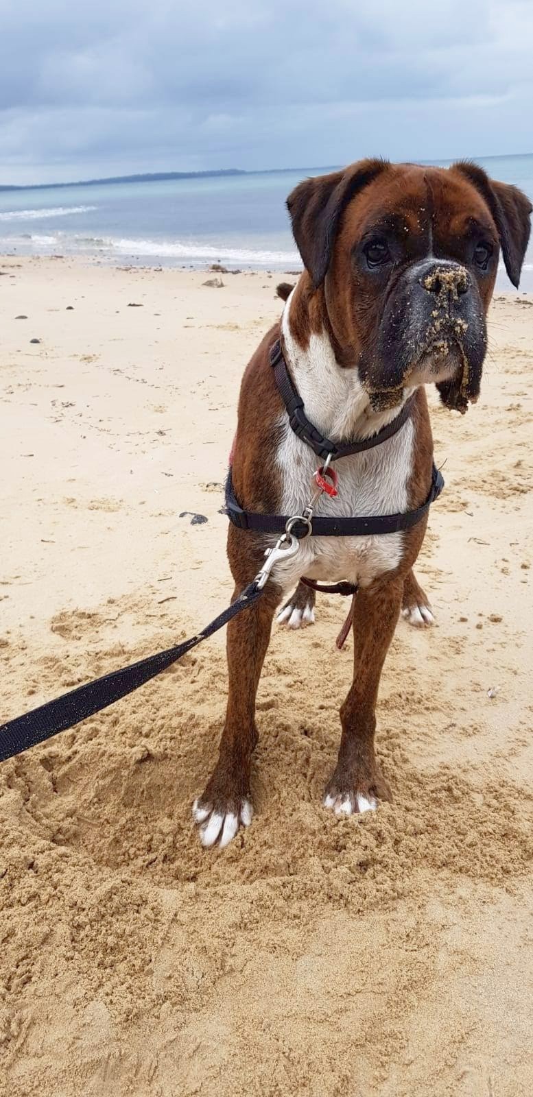 He is an extremely loyal and devoted Boxer boy who enjoys belly rubs, long walks, and splashing in the water at the beach. Milo will even happily jog along side you on the lead.