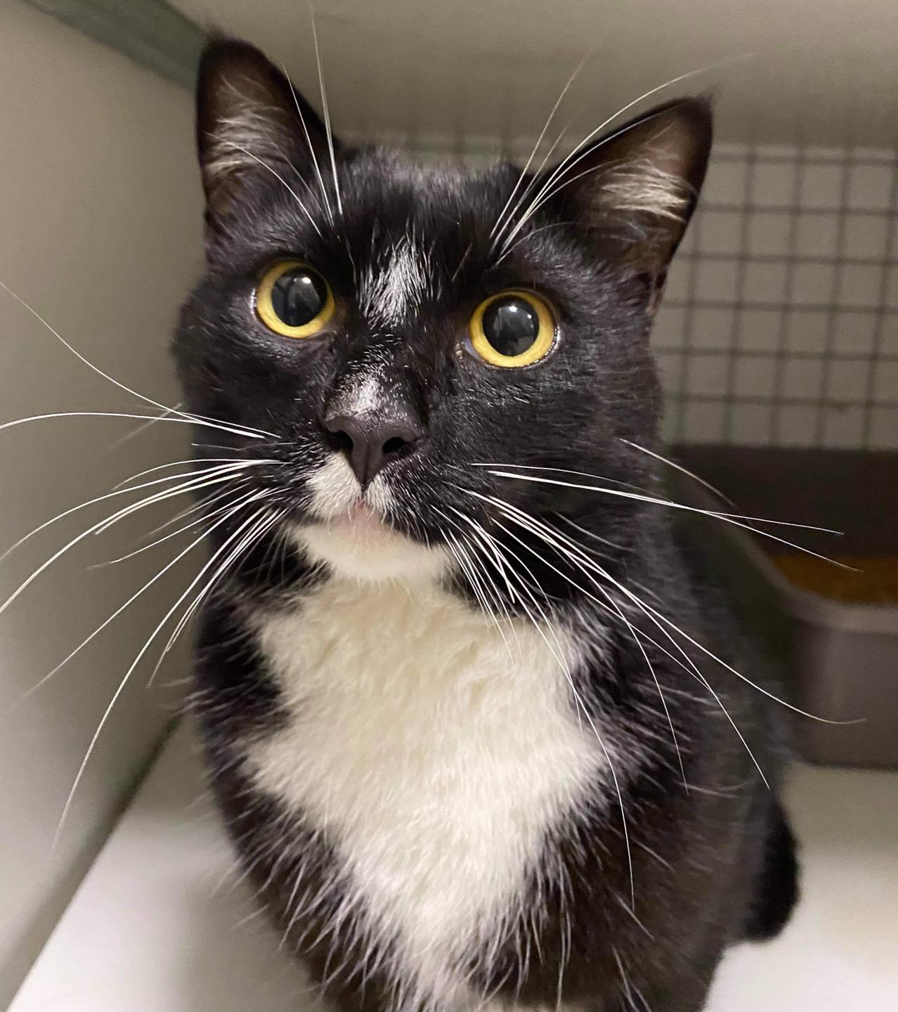 Imp 569 "Mobius". Mobius is a black and white DSH male cat, approx. 2 years old. He came in as an unmicrochipped stray but appeared very loved. He is quiet, clean but very sweet. He will come out of his shell in the right home. He is being desexed this Tuesday 6 July. His adoption fee of $200 includes microchipping, desexing, vaccination, worming, flea treatment and registration.