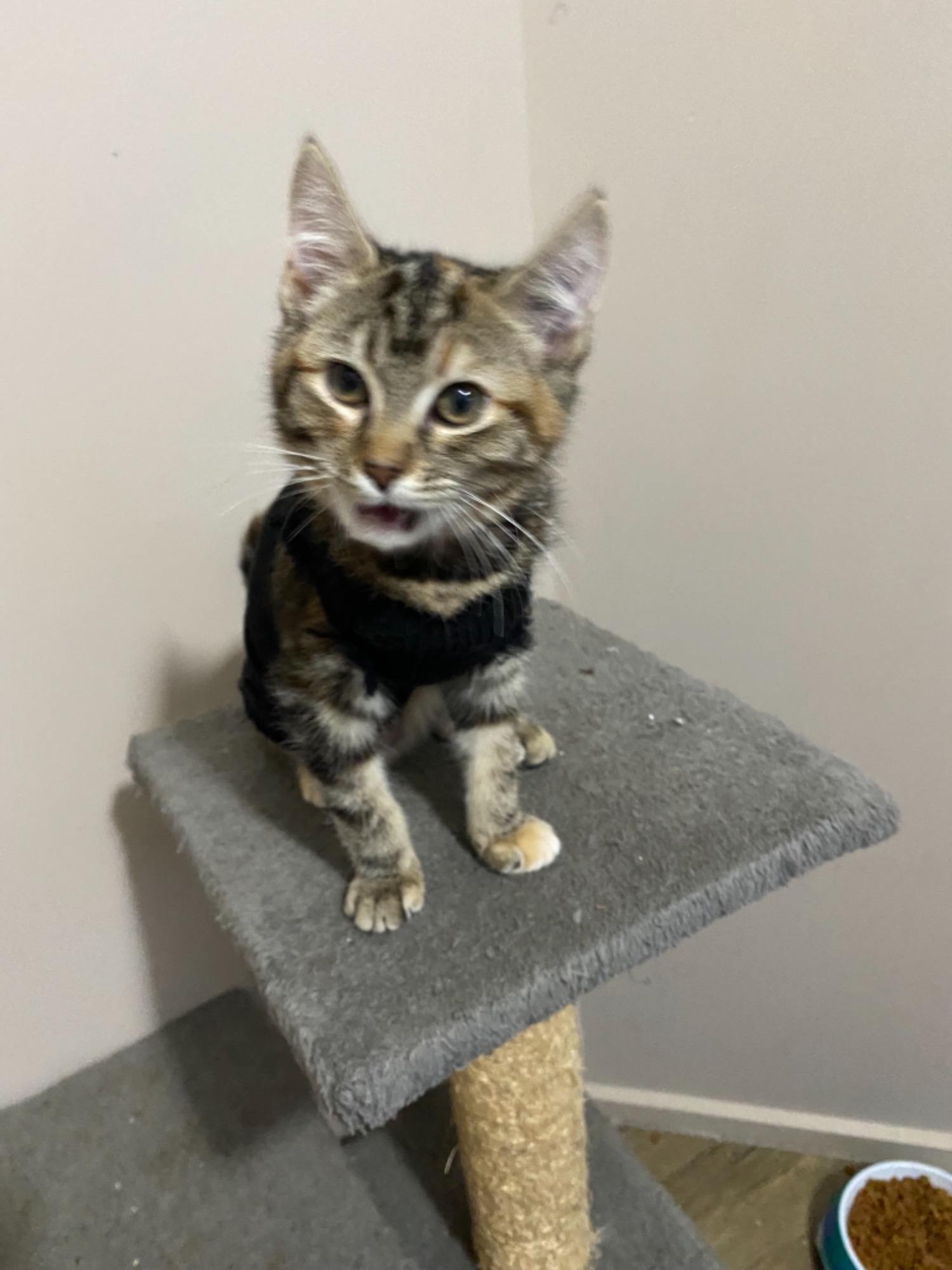 Simone is the sweetest girl who has the loudest purr. She loves nothing more than to snuggle up on your lap and have her neck scratched. She loves playing with toys and her siblings.