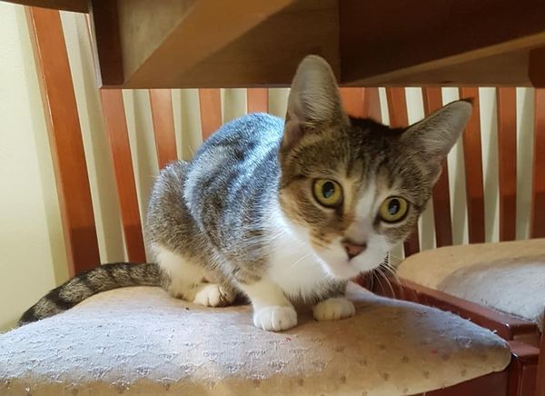 She is a quiet cat who finds places to rest and watch the world. She tolerates being picked up but a pat would suffice.
