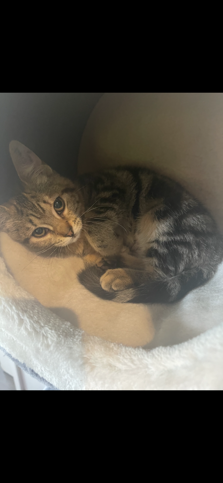 Vaeda is a confident, cheeky and playful kitten that will steal your heart. She seeks out your attention by jumping on your lap and purring for an ear rub and enjoying plenty of cuddles. She loves to play with her sibling Hazel and would be best suited to a home with her sister Hazel or another feline friend to spend her days with. She is full of energy when its time for play and will happily curl up next to you to relax in the evening. Raised in a foster home with small children, other adult cats and a large dog.she would be suitable for all of the above. please complete an adoption form to apply for me.