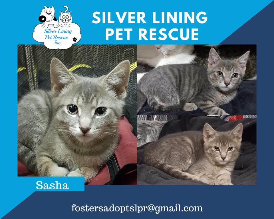 If you would like to meet Sasha, please email the Rescue at fostersadoptslpr@gmail.com or pm the Silver Lining Pet Rescue Inc facebook page.