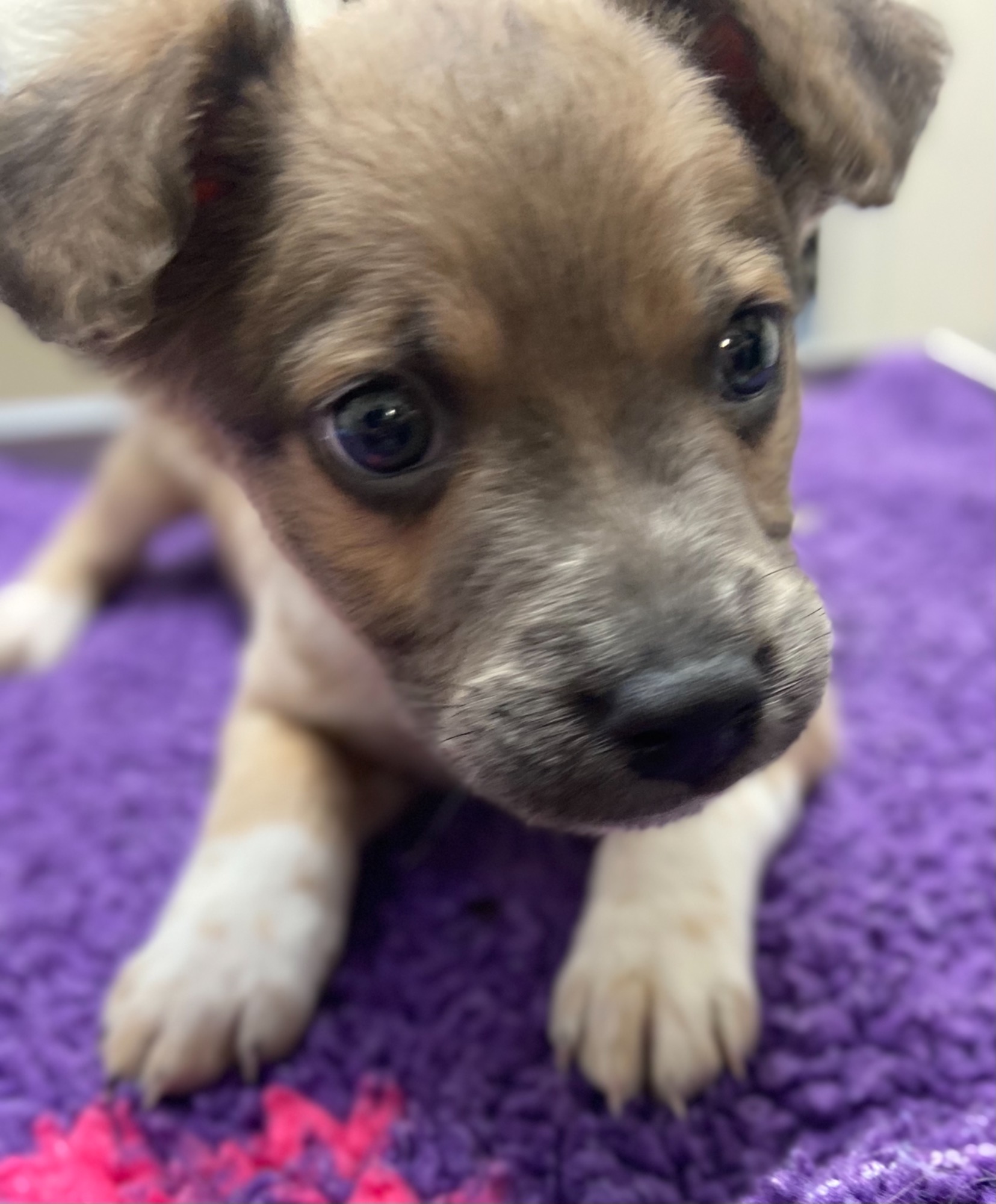 Due to having no knowledge about Georges's background we are estimating his breed/s make-up quite broadly - He currently weighs in at around 1.5kg and is approximately 10 weeks old. As for his size as an adult, we simply cannot predict if it will be a tiny 5kg or a medium size 15kg so we would love to find a family for George where it ultimately won't matter how big or small he will be!