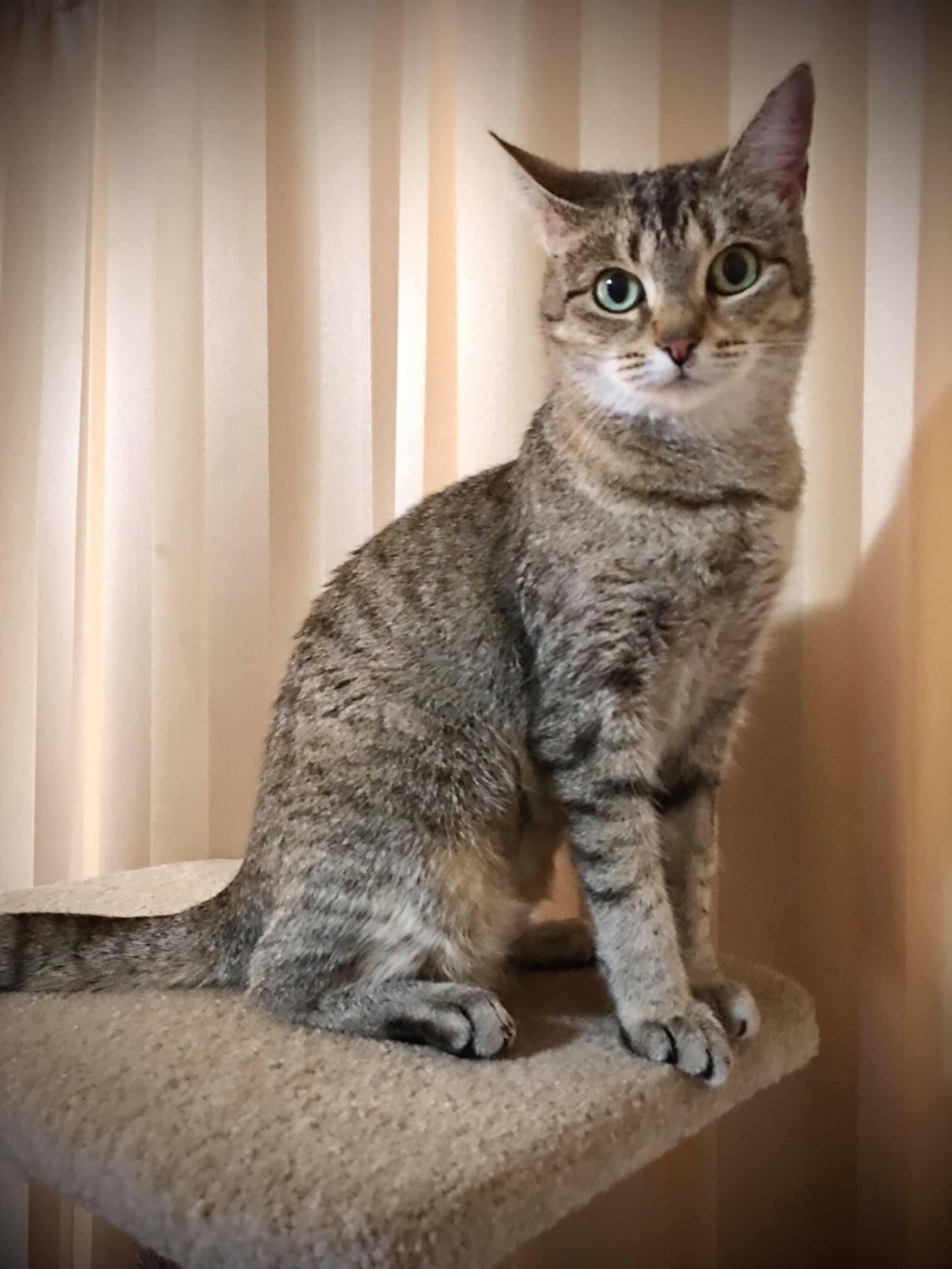 Tinky is a 2-year-old female tabby with big beautiful green eyes. Don’t be fooled by her whimsical name; this kitty is no shrinking violet.
