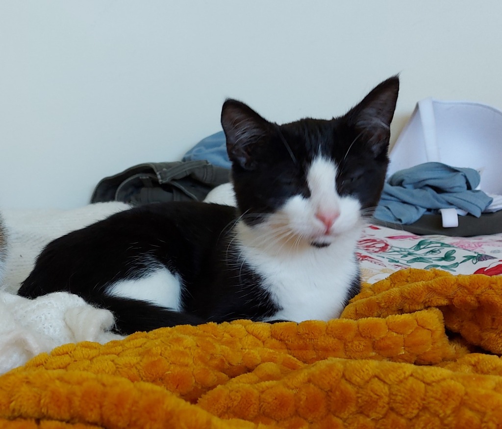 Hi Im Bruce Wayne. I'm a gorgeous little tuxedo with a perfect Batman mask. I'm shy and quiet until I feel safe, but when I come out of my shell I'm extremely active, love to play and climb up on things I shouldn't climb on haha, explore and get into general mischief. I get bored easily so wouldn't suit being a solo cat, I need a teenage bestie to play with, who is active like me. I love playing with toys and climbing high up on my cat tree. When I'm done with playing I love to cuddle with my human, When I relax into your arms I'm a little purr machine.