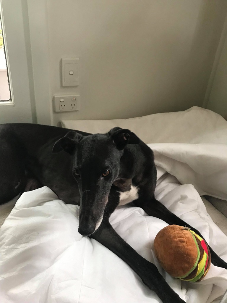 I am a gorgeous four-year-old retired racer looking for a warn snuggly couch and family to call my own. In my foster home I have become a pro at walking on lead, and going up and downstairs.