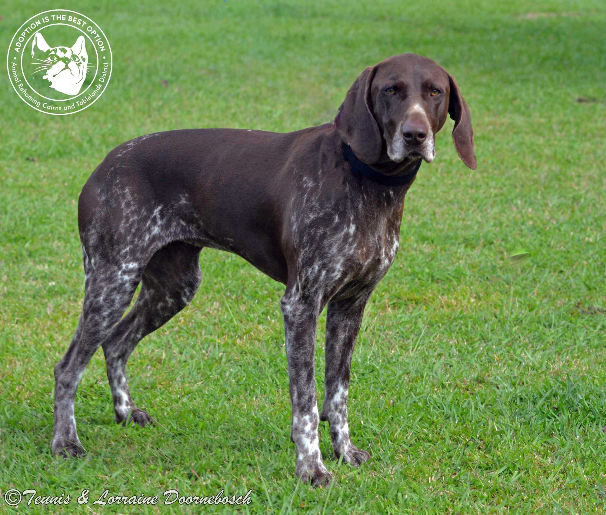 PIPPA is a German Short haired Pointer with a beautiful liver and white coat. Her temperament is typical of the breed and very easy to fall in love with but, she is a gun dog at heart and can't be trusted with other animals she might consider prey, such as fowls or cats. But she is great with other dogs, kids and people in general. She would have a home now with her foster family if only she didn't want to hunt their cat and the chooks. Having said that, with the temptation removed from her environment, she will make a loving, loyal companion to any family who are familiar with and understand, the nature of this breed. She will need enough room to run and exercise, preferably with a companion dog of a similar age and energy level but, there'll be NO hunting for this gorgeous girl. So if you're contemplating taking her on a pig hunt, you're barking up the wrong tree. Pippa will find a family who will love her for what she is, not what she can do for them. She's very special.