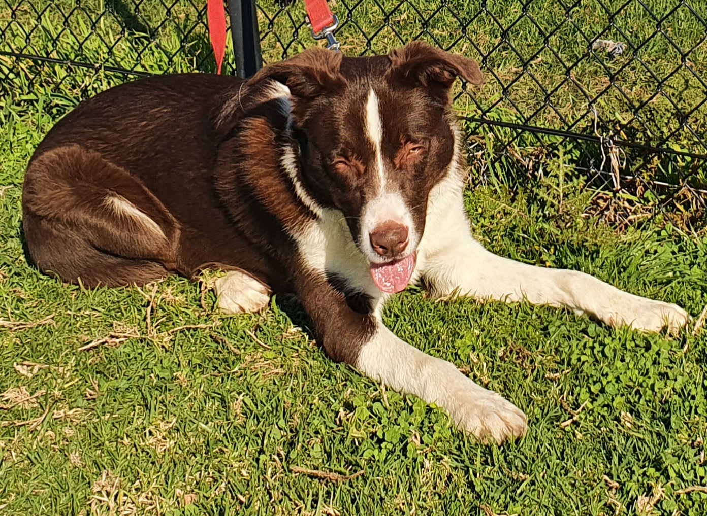 He has wonderful classic Border Collie markings in a lovely chocolate colour. His coat is wonderfully thick, but short, making it easy to look after.