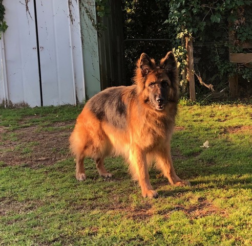 Hope is an eight year old long coat pedigree German Shepherd who is now looking for a new home as her owner has to go overseas.
