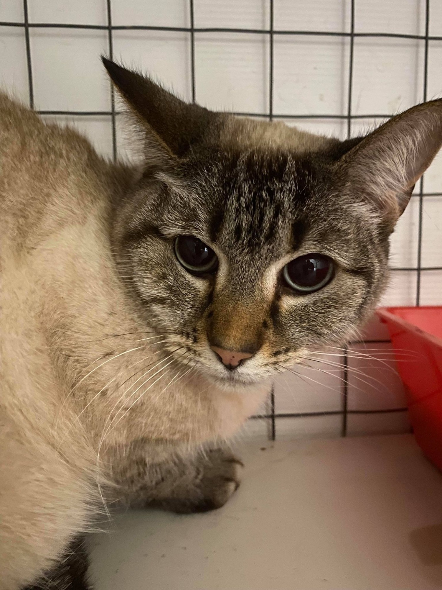IMP 21 SASHA. Sasha is a tabby point Tonkinese or Ragdoll maybe. Regardless of what breed she may have in her she is a special girl. She is almost 9 years old and was surrendered due to a death in the family. She isn't coping too well in the shelter but was described as a friendly happy girl and even walks well on a harness and lead (which will go home with her). She was previously desexed, had a dental last year, wormed and flea treated. We would like to see her in a new home quickly given her age. Her release fee is $63. Please call 6583 3488 if interested.