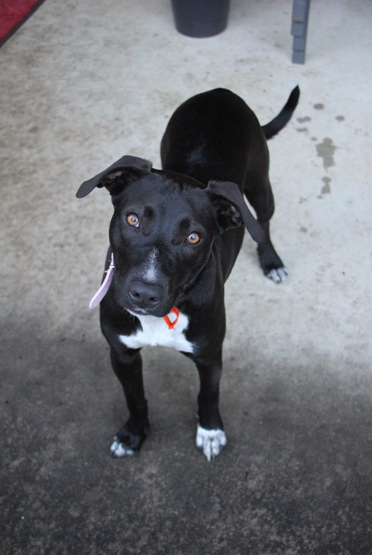 She is quite intelligent and able to work out dog-food puzzle toys. In a short while she has learnt some basic commands such as "Sit", "Stop" & "Down".